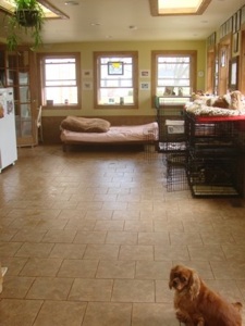 This is our dog room, which our Cavaliers love and is located directly off our kitchen. They have a big, securely fenced back yard to play in so they get lots of sun, fresh air and freedom their entire lives. It’s a very good life, indeed.
